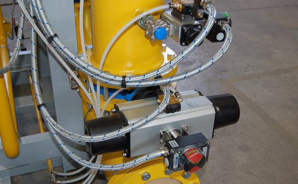 空分設(shè)備是煤化工行業(yè)、石化行業(yè)在生產(chǎn)制造過程中使用的重要儀器設(shè)備,其運作機(jī)械原理是實現(xiàn)對空氣的降溫冷卻,同時以增壓方式讓空氣的體積變小、轉(zhuǎn)化為液態(tài),根據(jù)空氣中各組成氣體之間的沸點差異,讓液化物與氣體充分接觸并發(fā)生反應(yīng),在熱質(zhì)交換原理的作用下,實現(xiàn)高純度氣體的分離。得銳自動化公司閥門在空分設(shè)備上的應(yīng)用主要分為兩大塊,大型空分設(shè)備上采用OMAL歐瑪爾的高頻、快速特性的氣動執(zhí)行器,在小型空分設(shè)備上使用的是OMAL歐瑪爾氣動梭閥和角座閥。